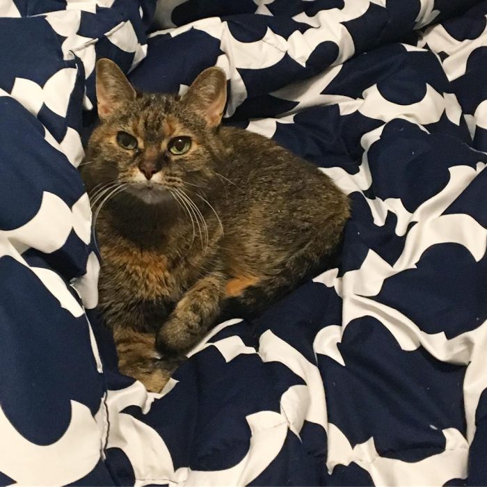 #newbedding #comforter #cozycat #robotthecat #catnamedrobot #robots #tabby #torbie #catsofinstagram #kittensofinstagram #kittens #greeneyes #purrfect #tabbycat #bigcitykitty #adoptdontshop #rescuecatsofinstagram #rescuecats #instacats #rescueismyfavouritebreed #canadiancats #torontocats