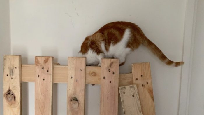I don’t know what this indoor fence is but I like climbing it!
