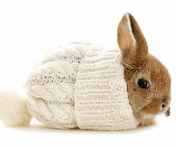 Just a little bunny in a hat keeping snug