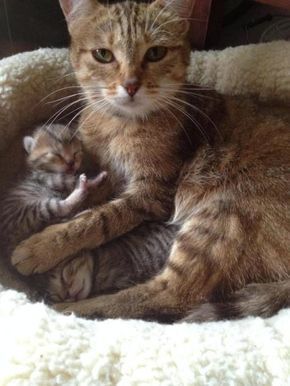 Mama cat and tiny baby