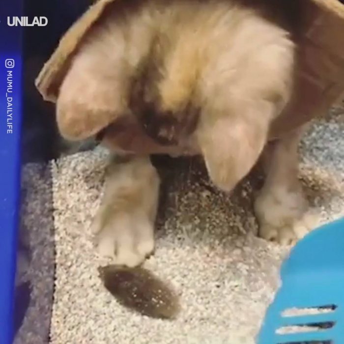 Cat Accidentally Buries Tail In Litter Tray