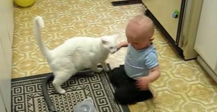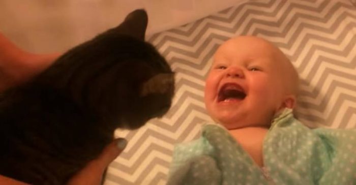 Baby is So Excited to See Kitty!
