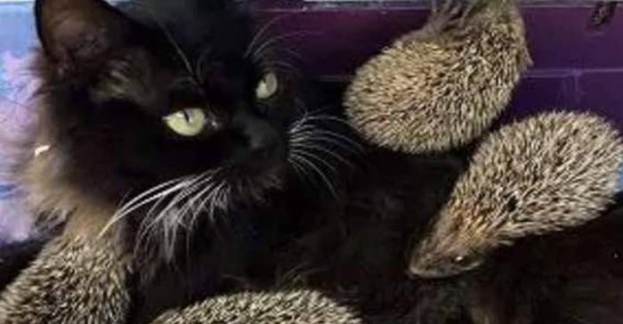 Cat Becomes Foster Mama to Eight Baby Hedgehogs – We Love Cats and