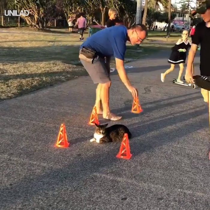 Watch Cat Surrounded By Cones