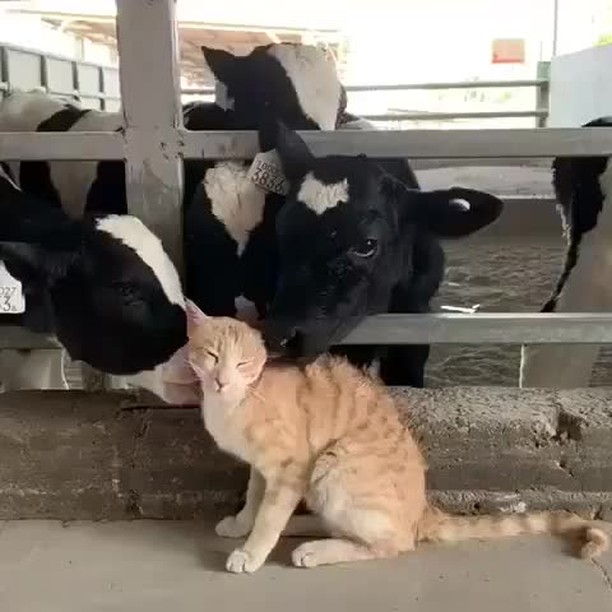 From @ciaopappy: “Alan went to visit a nearby farm…. also his friends cows love him….” #catsofinstagram