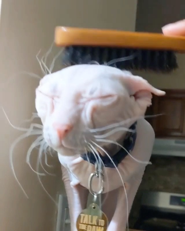 I’za enjoy getting brushed just as much as ze next cat. If you don’t like it, you can talk to ze paw! &; . Hooman: Apparently bushing your cat regularly is important in keeping their coat tangle-free. &;&;&;&; . . Hooman: More importantly it’s a good way to express affection on a level your cat will understand. *Sound on to hear the purrs&;&;*