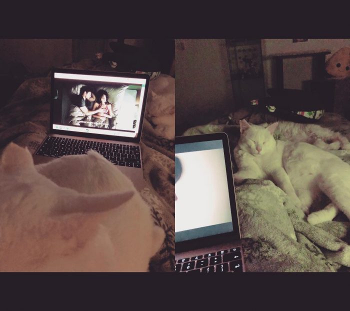 How does one relax before a tough first day at work after the winterBy WeLoveKitties.com / January 5, 2019 How does one relax before a tough first day at work after the winter break? By watching a foreign crime show on Netflix with the cats, of course. Copy Link You Might Also LikeDaily yoga sessionSleepy.PaaaaawwwwwsTime to have a shower