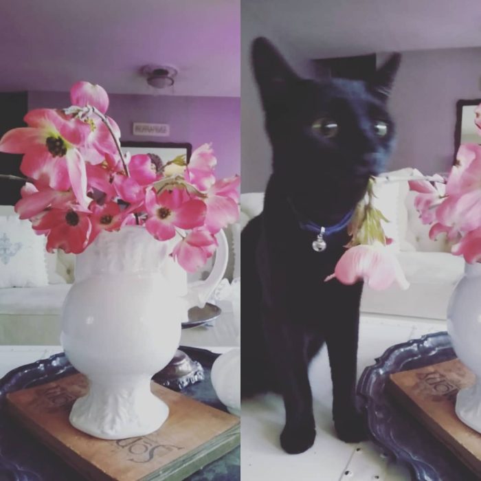 Welppp.. I thought it’d be nice to bring some flowers in from my garden. That didn’t last long- he’s already bit 2 off. 🤬🙄🙄